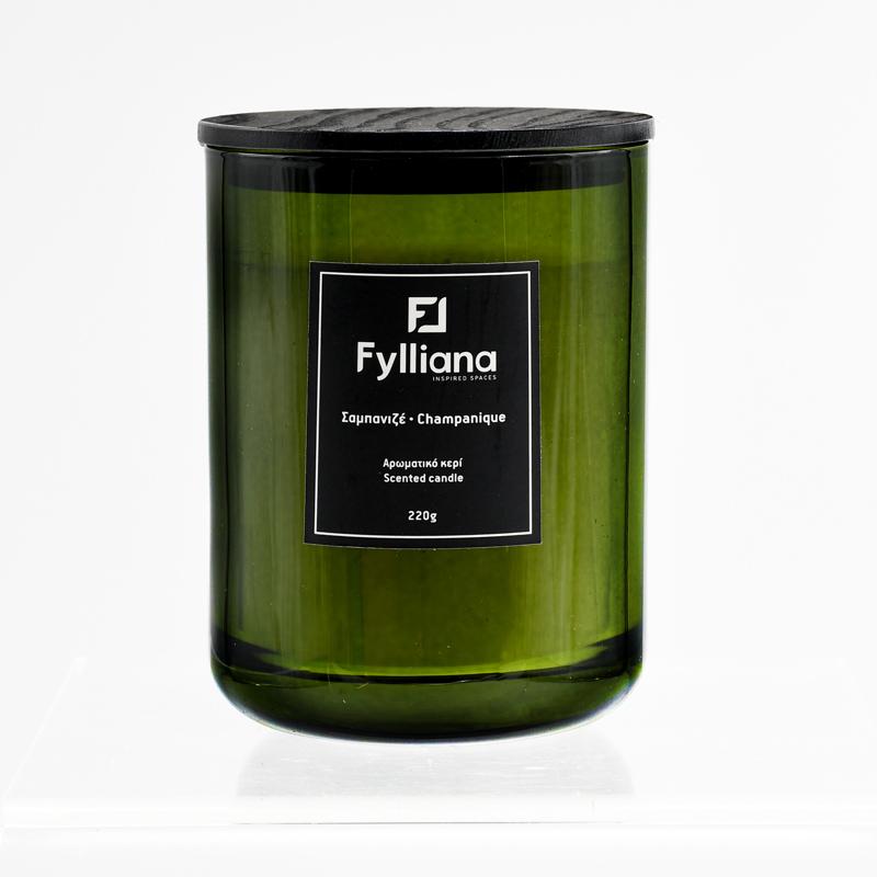 ΑΡΩΜΑΤΙΚΟ ΚΕΡΙ Fylliana FL80105 “ΣΑΜΠΑΝΙΑ” ΣΕ ΓΥΑΛΙΝΟ ΒΑΖΑΚΙ 220gr ΚΑΙ ΣΥΣΚΕΥΑΣΙΑ ΔΩΡΟΥ ΠΡΑΣΙΝΟ ΧΡΩΜΑ 8×10.5εκ