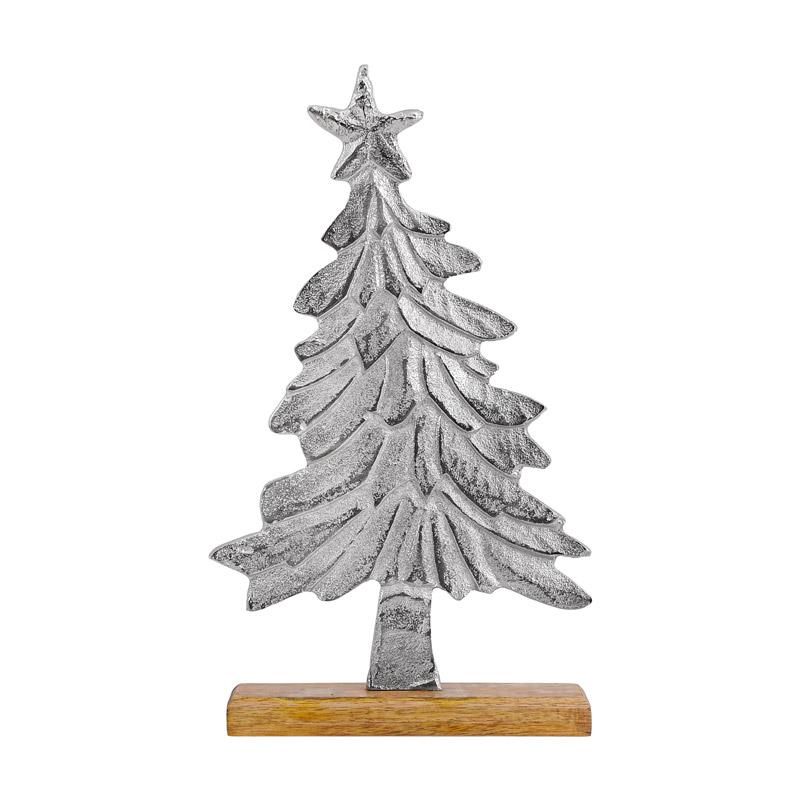 Προσθέστε μια πινελιά κομψότητας στον χριστουγεννιάτικο διάκοσμό σας με αυτό το μοντέρνο διακοσμητικό δέντρο. Κατασκευασμένο από υψηλής ποιότητας αλουμίνιο με εντυπωσιακό χρυσό φινίρισμα, το δέντρο διαθέτει λεπτομερή σχεδίαση που θυμίζει παραδοσιακό έλατο και στέφεται με ένα κομψό αστέρι στην κορυφή.
