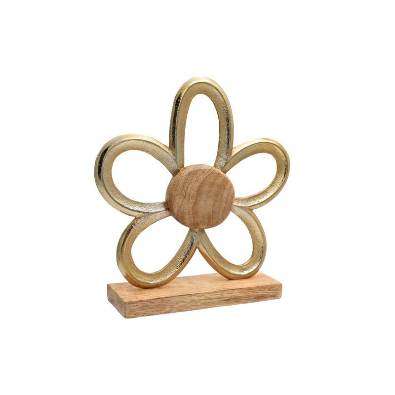 ΔΙΑΚΟΣΜΗΤΙΚΟ ΑΛΟΥΜΙΝΙΟΥ Fylliana Flower 722 ΜΕ ΞΥΛΙΝΗ ΒΑΣΗ ΧΡΥΣΟ ΧΡΩΜΑ 20x5x22εκ