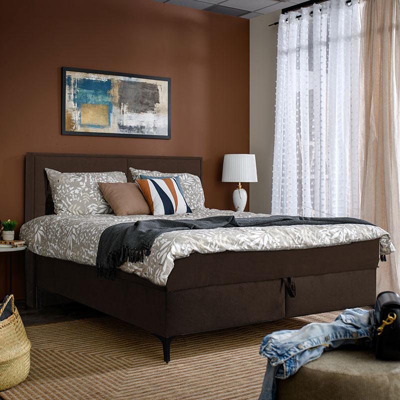 Επένδυση με Υψηλής Ποιότητας Ύφασμα: Το κρεβάτι είναι επενδεδυμένο με ύφασμα υψηλής ποιότητας, που προσφέρει μια απαλή και πολυτελή αίσθηση. Το ύφασμα είναι ανθεκτικό στη φθορά και εύκολο στη συντήρηση, διατηρώντας την εμφάνιση του κρεβατιού φρέσκια και καθαρή.