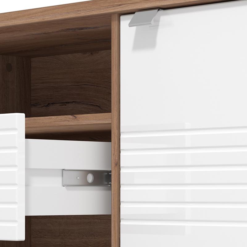 Λευκό, flagstaff oak και μελαμινή με έξτρα επίστρωση γυαλιστερής επιφάνειας πανω σε MDF.