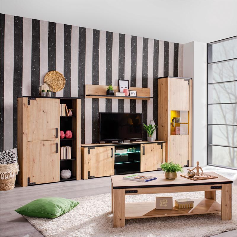 Η επιλογή του χρώματος artisan oak σε συνδυασμό με το μαύρο είναι ιδανική, για την δημιουργία ενός ζεστού και άνετου χώρου. Προτείνουμε σε πέριπτωση που θέλετε να ζεστάνετε ακόμη περισσότερο τον χώρο σας, να χρησιμοποιήσετε στα υφάσματα αποχρώσεις με διαφορετικές χρωματικές εντάσεις κόκκινου, καφέ ακόμη και βαθύ μώβ. Εναλλακτικά, μπορείτε να το συνδυάσετε με ταπετσαρίες μοτίβων ή ριγέ ασπρόμαυρων αποχρώσεων.