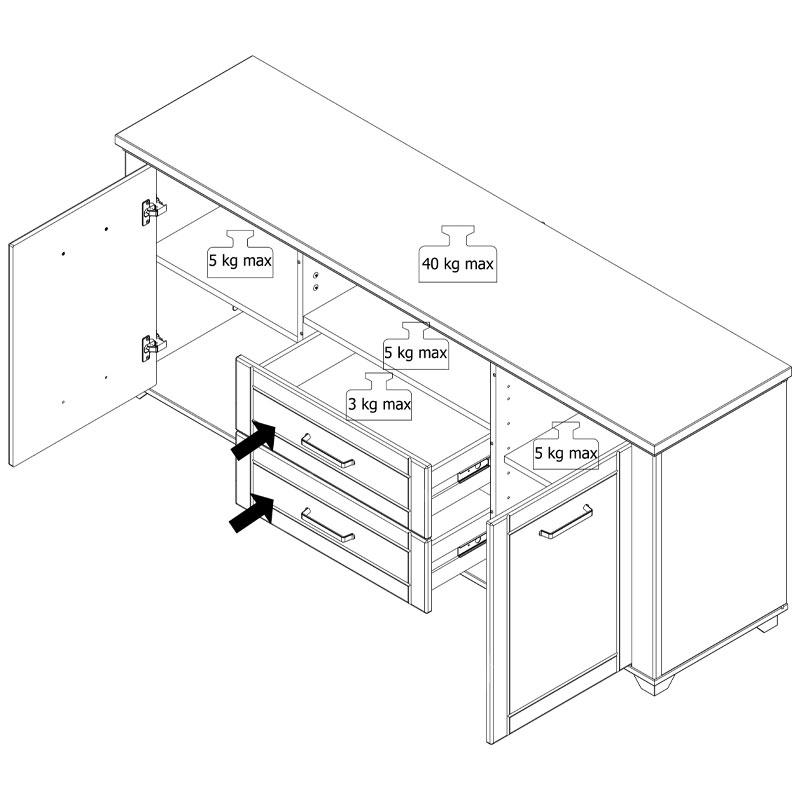 Μοριοσανίδα με πιστοποιημένη επικάλυψη μελαμίνης Ε1, επίστρωση foil mat σε MDF και μια πλαστική μαύρη χειρολαβή με άκρες αλουμινίου.