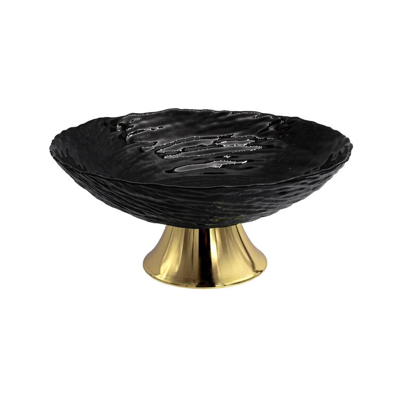 Μια γυάλινη στρογγυλή φρουτιέρα-πιατέλα με μεταλλική βάση συνδυάζει την κομψότητα του γυαλιού με την ανθεκτικότητα του μετάλλου, δημιουργώντας ένα σκεύος σερβιρίσματος τόσο όμορφο όσο και λειτουργικό. Η διαφανής γυάλινη θήκη επιτρέπει στα φρούτα να λάμπουν, ενώ η μεταλλική βάση προσφέρει σταθερότητα και ισορροπία.