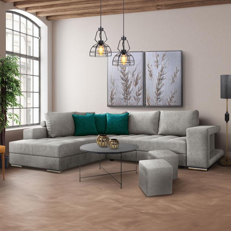 Ο σκελετός του καναπέ είναι επενδεδυμένος με υψηλής ποιότητας 100% πολυεστερικό και αλέκιαστο (easy clean)* ύφασμα. Για τον καθαρισμό του υφάσματος χρησιμοποιήστε νερό και σαπούνι.