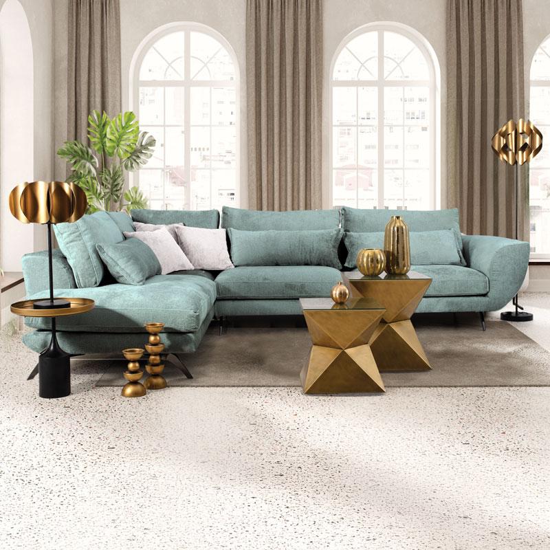 Ευελιξία: Ο γωνιακός σχεδιασμός εκμεταλλεύεται αποτελεσματικά τον διαθέσιμο χώρο, καθιστώντας τον ιδανικό για μικρά ή μεγάλα σαλόνια.