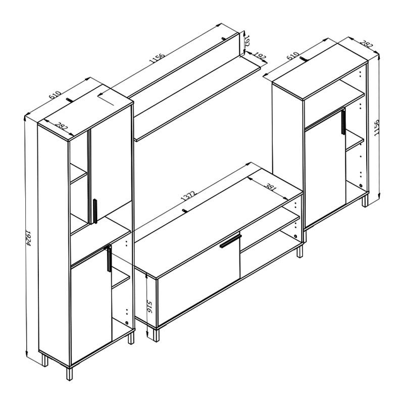 Αν και εσείς ακολουθείτε την φιλοσοφία της συμμετρίας αλλά θέλετε να κάνετε την διαφορά, η επιλογή της σύνθεσης Cantal είναι η λύση. Αποτελείται από μια σειρά ανοιχτών ραφιών, κλειστών ντουλαπιών, διαφορετικών διαστάσεων, ενώ τα τέσσερα κομμάτια από τα οποία απαρτίζεται, μπορεί να τοποθετηθούν στον χώρο ανάλογα με τις ανάγκες σας. Για να προσθέσετε, ωστόσο, αντίθεση στον χώρο σας μπορείτε να διακοσμήσετε με κάδρα ασύμμετρα μεταξύ τους.