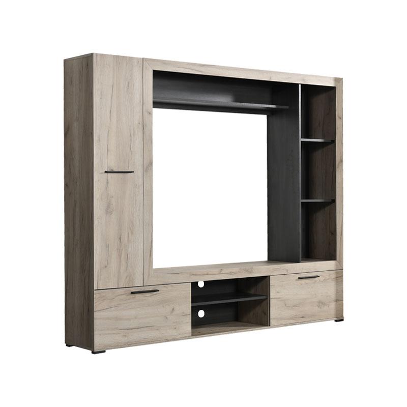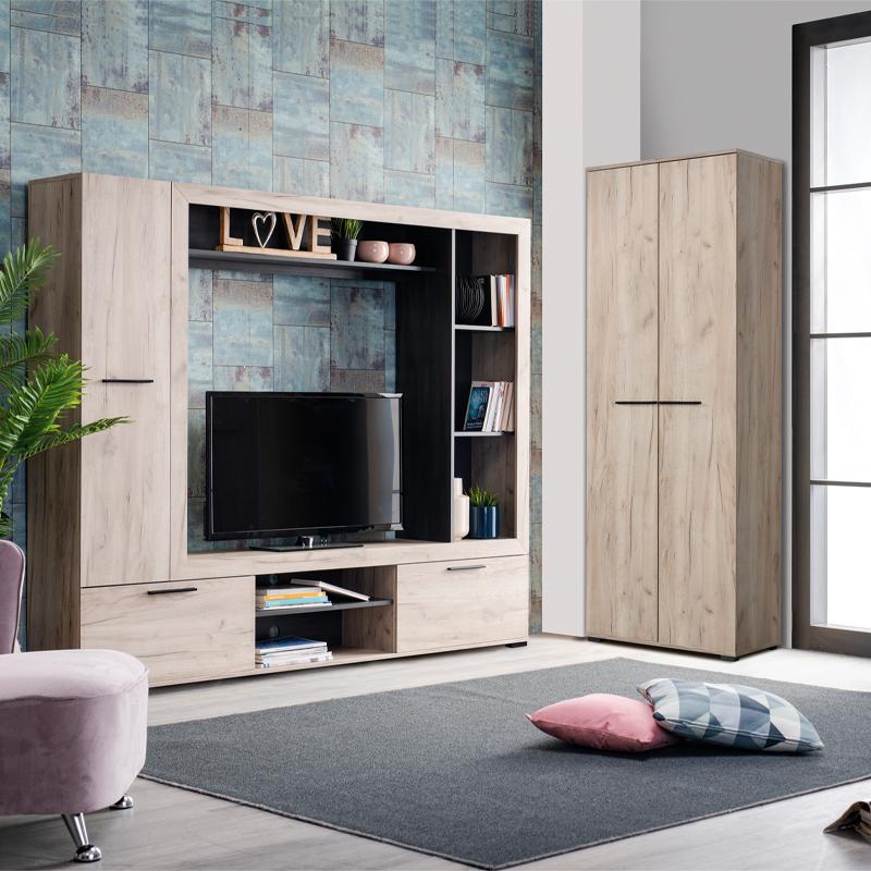 Ολοκληρώστε το σαλόνι σας με την επιλογή Lorca. Μπορείτε να τοποθετήσετε την τηλεόραση σας στο κέντρο, και στους διπλανούς χώρους της να τοποθετήσετε τα αγαπημένα σας βιβλία, κεραμικά ή και φωτογραφίες των αγαπημένων σας. Διαθέτει, επίσης, ράφια και τρία ευρύχωρα ντουλάπια. Ιδανική για να τοποθετηθεί μπροστά από μια πολύχρωμη ταπετσαρία, αναδεικνύοντας την σύνθεση ακόμη περισσότερο.