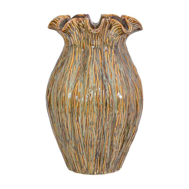 ΚΕΡΑΜΙΚΟ ΒΑΖΟ Fylliana FL30007 ΜΠΕΖ-ΓΚΡΙ-ΧΡΥΣΟ ΧΡΩΜΑ 22×36εκ
