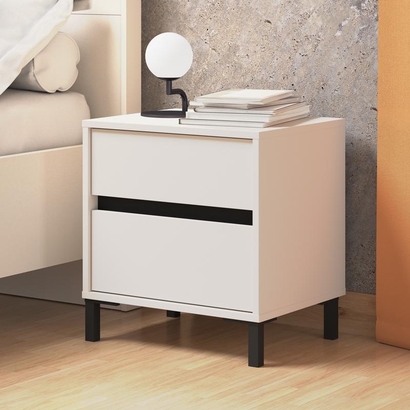 Το κομοδίνο Marron συνδυάζει πρακτικότητα και μοντέρνα αισθητική. Διαθέτει δύο συρτάρια αποθήκευσης, προσφέροντας άφθονο χώρο για την οργάνωση μικρών αντικειμένων, όπως βιβλία, αξεσουάρ ή προσωπικά είδη. Το ανθεκτικό υλικό της μελαμίνης εξασφαλίζει μακροχρόνια χρήση και εύκολη συντήρηση, ενώ το κομψό σχέδιο του κομοδίνου το καθιστά ιδανικό για οποιονδήποτε χώρο, όπως το υπνοδωμάτιο ή το σαλόνι. Ο λιτός και σύγχρονος σχεδιασμός του ταιριάζει σε διάφορα στυλ διακόσμησης, προσφέροντας έναν πρακτικό και όμορφο τρόπο για να διατηρήσετε τον χώρο σας τακτοποιημένο.Το κομοδίνο διαθέτει προφίλ MDF τυλιγμένο 2D, προσφέροντας ανθεκτικότητα και κομψότητα, ενώ το φινίρισμα της μελαμίνης ενισχύει την αισθητική του και τη μακροχρόνια χρήση του.