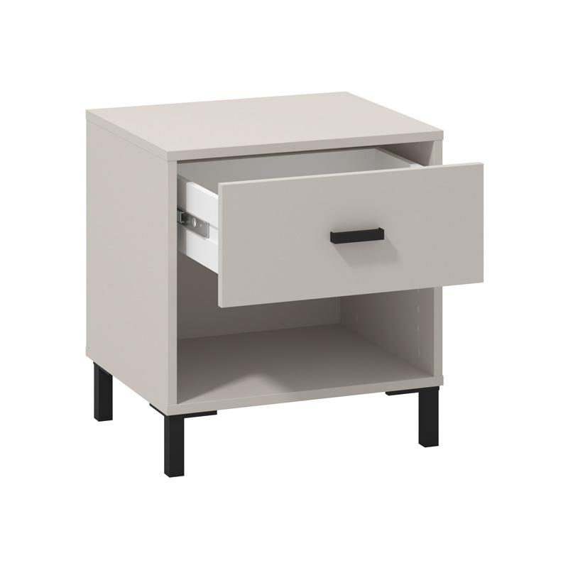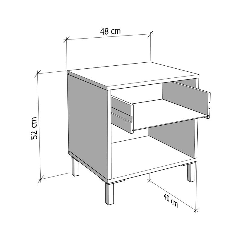Το κομοδίνο Salona διαθέτει 1 συρτάρι και ένα ράφι, ιδανικά για την αποθήκευση μικρών προσωπικών αντικειμένων, ρούχων ή αξεσουάρ, προσφέροντας άμεση και οργανωμένη πρόσβαση σε αυτά. Ο σχεδιασμός του είναι λιτός και κομψός, ιδανικός για κάθε υπνοδωμάτιο, προσφέροντας μια μοντέρνα και ταυτόχρονα λειτουργική λύση αποθήκευσης.