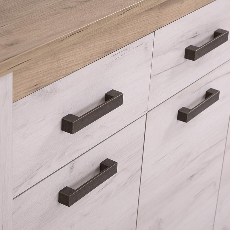 Μοριοσανίδα με πιστοποιημένη επικάλυψη μελαμίνης Ε1, και πλαστική χειρολαβή με άκρες αλουμινίου μαύρο rustic.