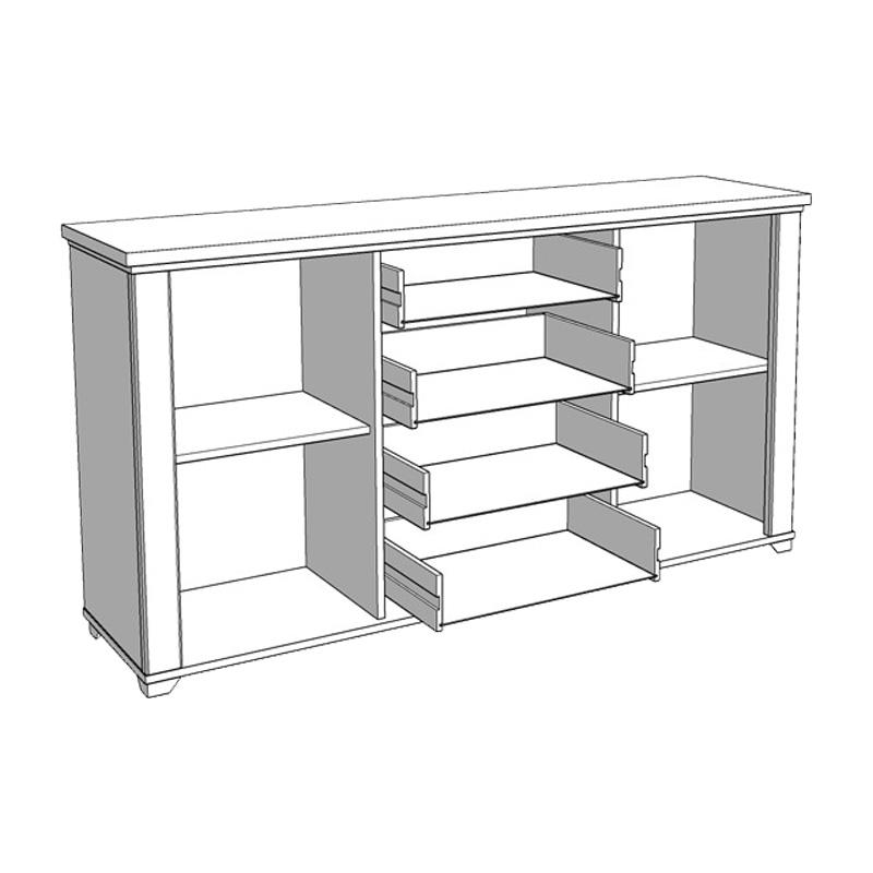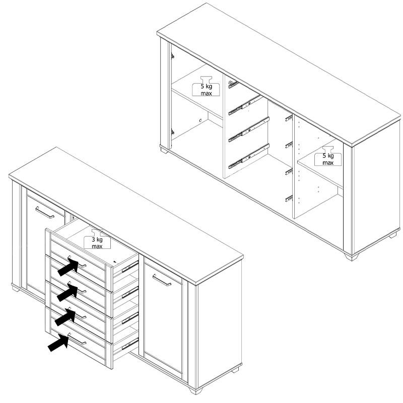 Μοριοσανίδα με πιστοποιημένη επικάλυψη μελαμίνης Ε1, επίστρωση foil mat σε MDF και μια πλαστική μαύρη χειρολαβή με άκρες αλουμινίου.