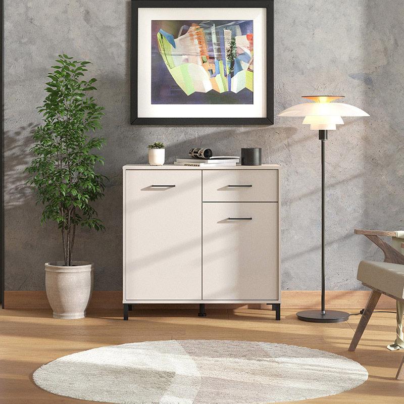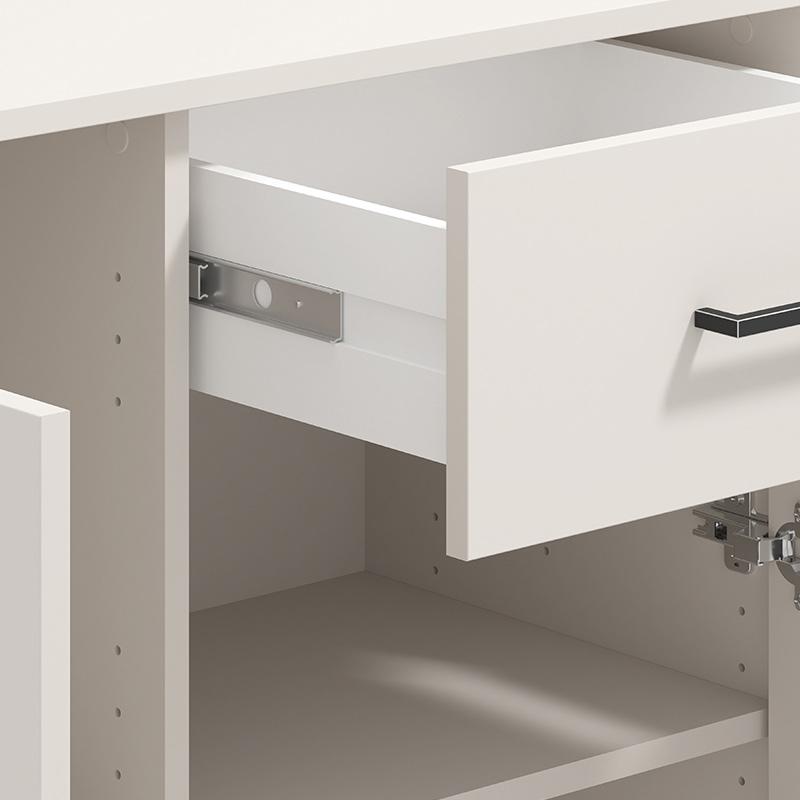 Μοριοσανίδα με πιστοποιημένη επικάλυψη μελαμίνης Ε1, και χειρολαβή αλουμινίου μαύρου χρωματος.