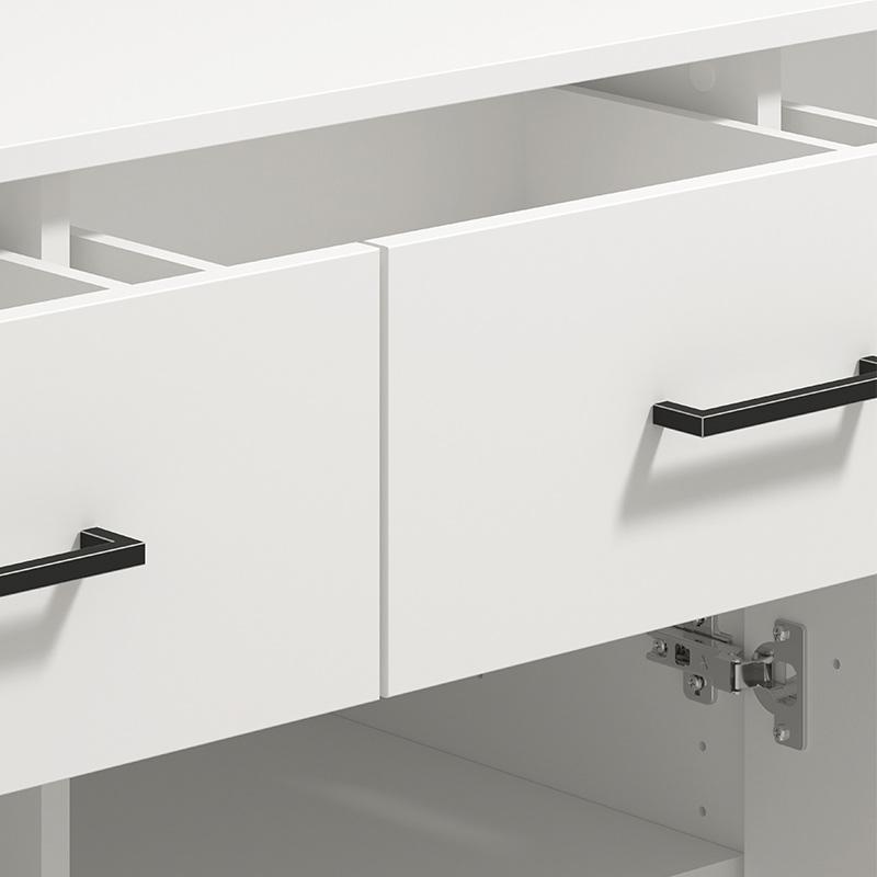 Μοριοσανίδα με πιστοποιημένη επικάλυψη μελαμίνης Ε1, και χειρολαβή αλουμινίου μαύρου χρωματος.