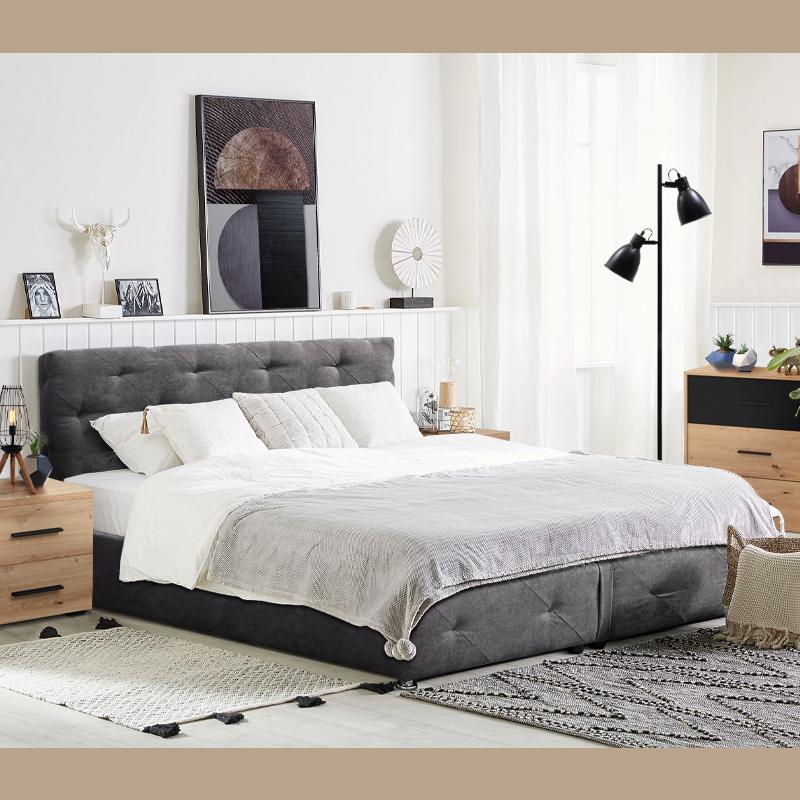 Το κρεβάτι διαθέτει κομψό και μοντέρνο σχεδιασμό που ταιριάζει σε κάθε διακόσμηση υπνοδωματίου. Οι καθαρές γραμμές και η προσεγμένη λεπτομέρεια προσδίδουν έναν εκλεπτυσμένο χαρακτήρα.