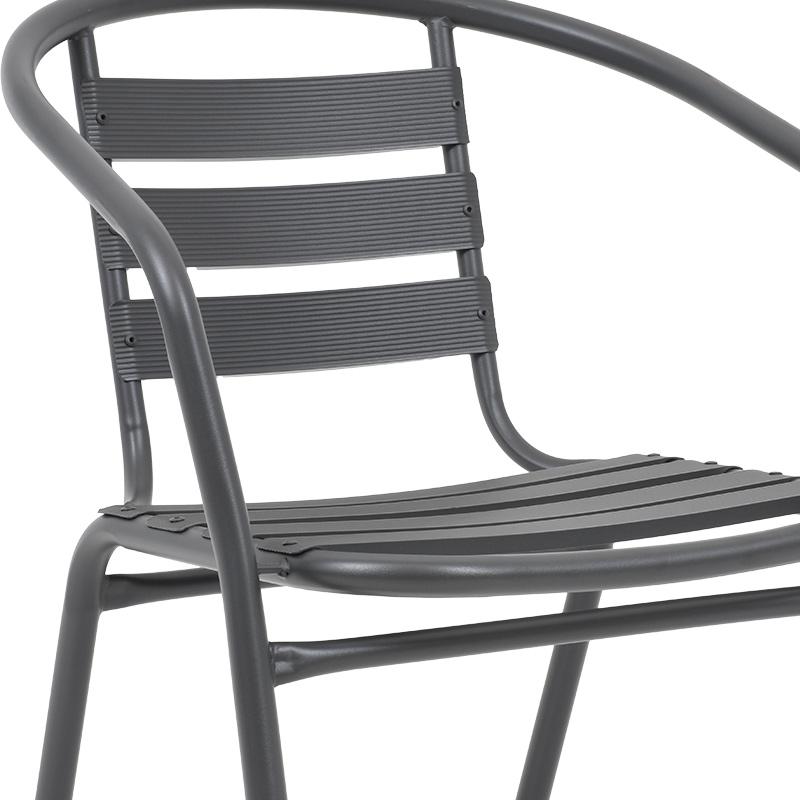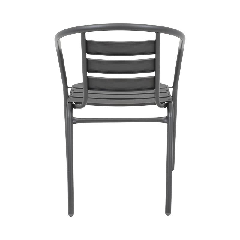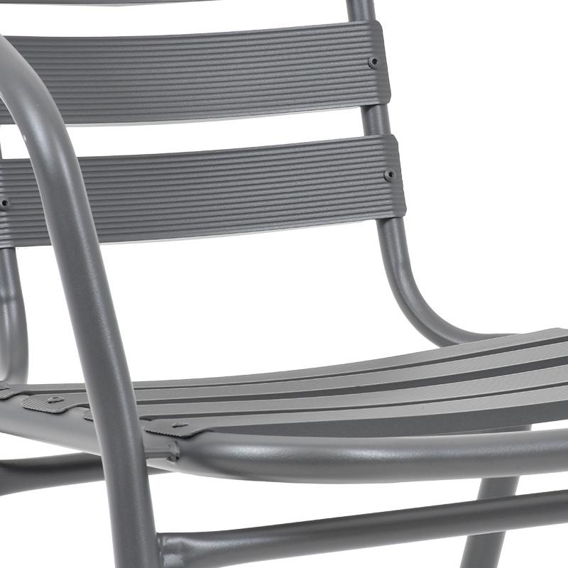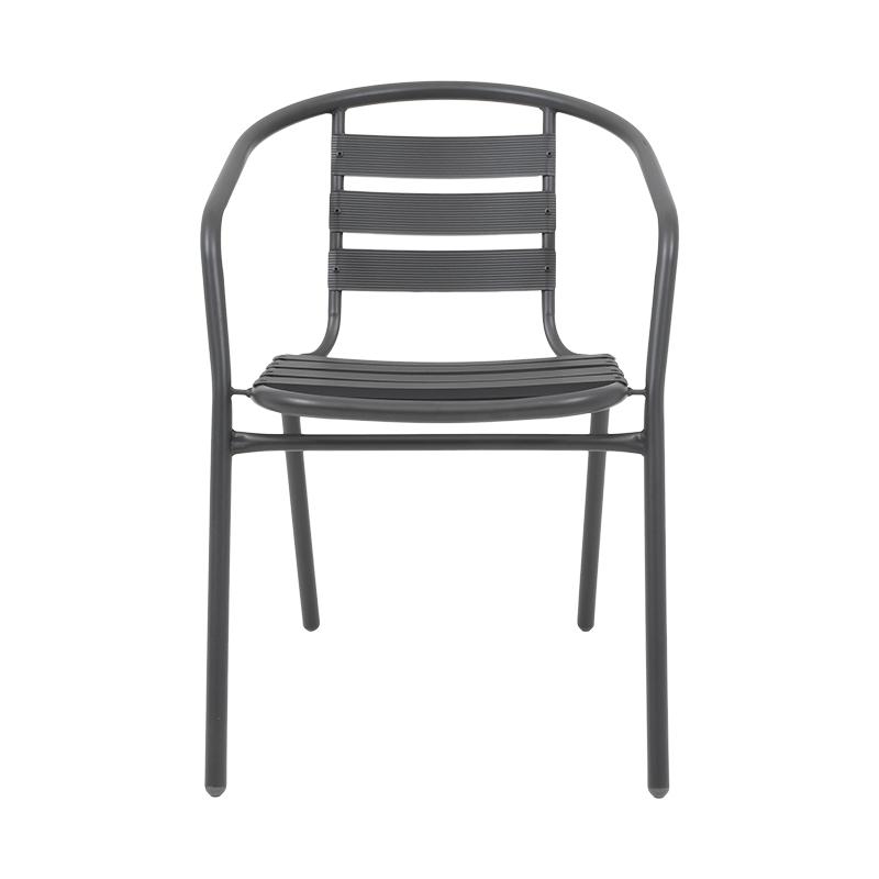 Υλικά Κατασκευής: Η καρέκλα είναι κατασκευασμένη από υψηλής ποιότητας μέταλλο, συνήθως αλουμίνιο ή ατσάλι, που προσφέρει ανθεκτικότητα και μακροχρόνια αντοχή στις εξωτερικές συνθήκες. Η μεταλλική κατασκευή εξασφαλίζει σταθερότητα και ασφάλεια.