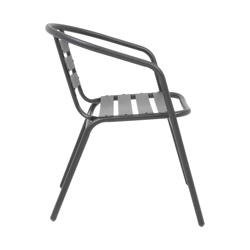 Συνδυασμός με Τραπέζια Κήπου: Συνδυάστε την καρέκλα με αντίστοιχα μεταλλικά τραπέζια για ένα ομοιόμορφο και κομψό σετ εξωτερικού χώρου.