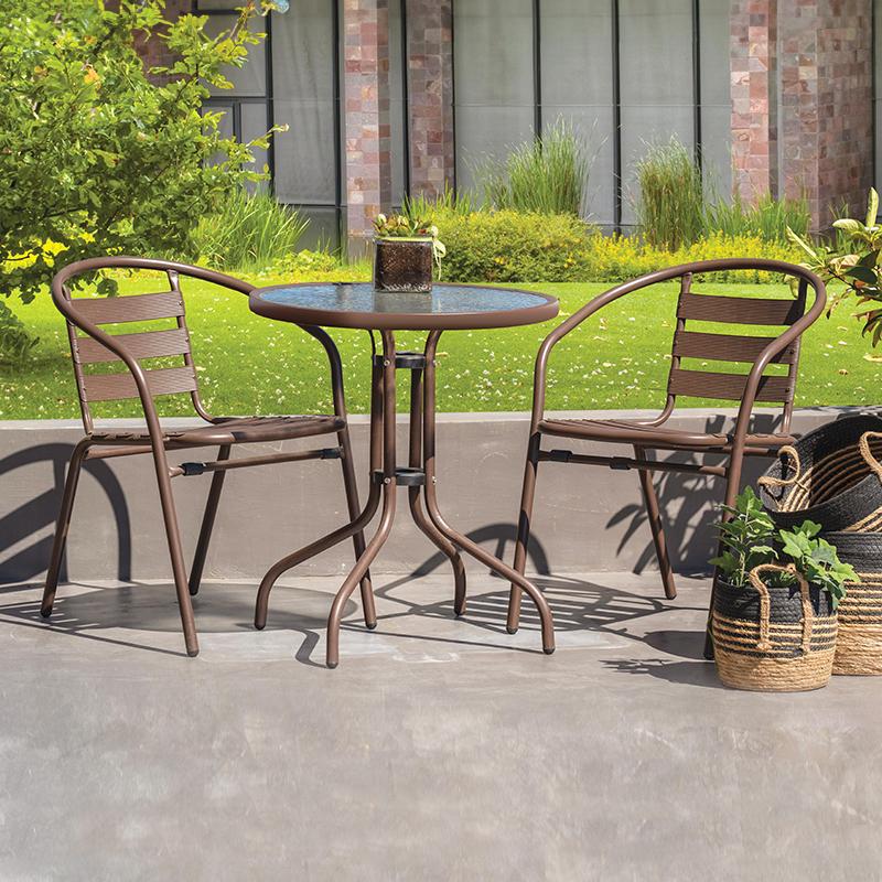 Συνδυασμός με Τραπέζια Κήπου: Συνδυάστε την καρέκλα με αντίστοιχα μεταλλικά τραπέζια για ένα ομοιόμορφο και κομψό σετ εξωτερικού χώρου.