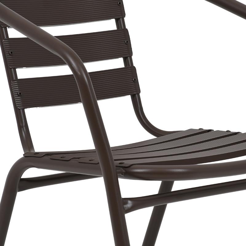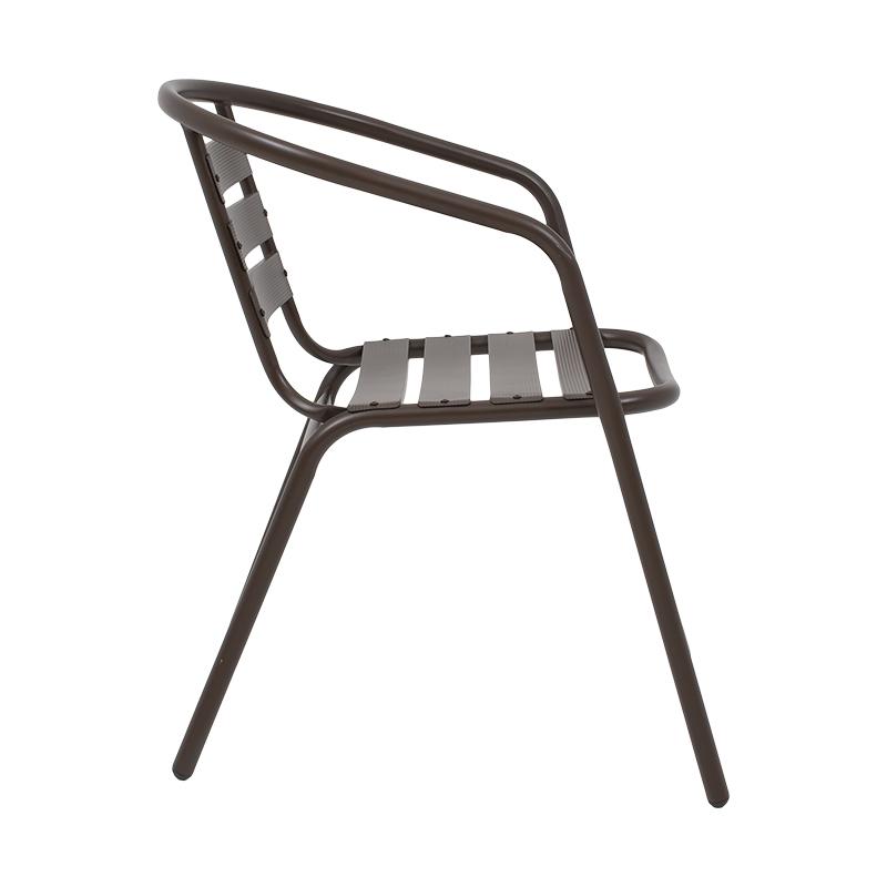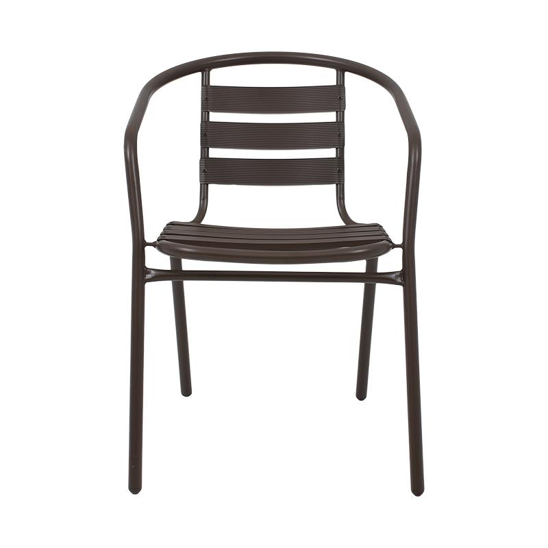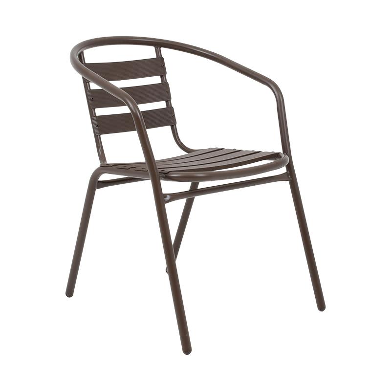 Υλικά Κατασκευής: Η καρέκλα είναι κατασκευασμένη από υψηλής ποιότητας μέταλλο, συνήθως αλουμίνιο ή ατσάλι, που προσφέρει ανθεκτικότητα και μακροχρόνια αντοχή στις εξωτερικές συνθήκες. Η μεταλλική κατασκευή εξασφαλίζει σταθερότητα και ασφάλεια.