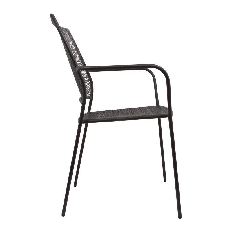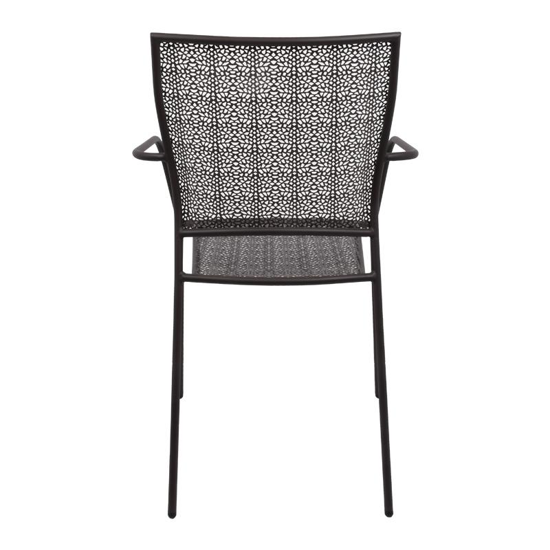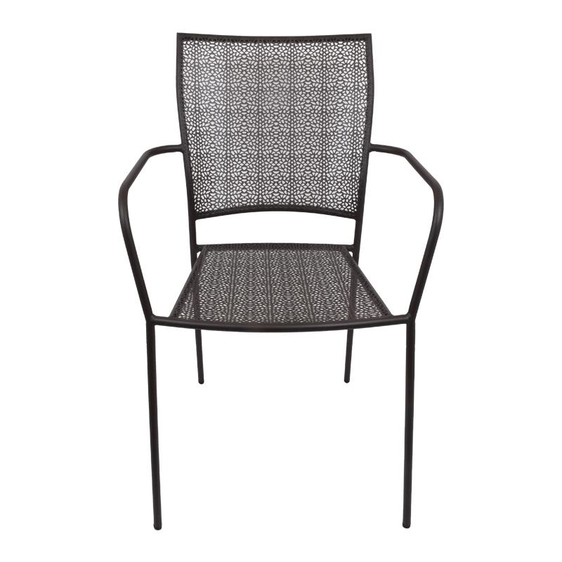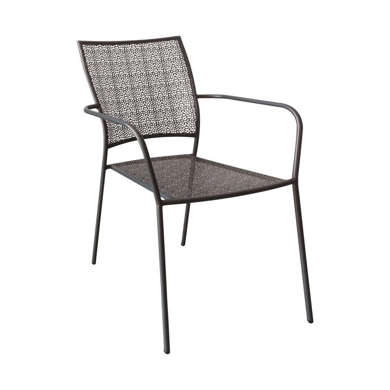 Μεταλλική καρέκλα με διάτρητο σχέδιο στην πλάτη και το κάθισμα. Σταθερός σκελετός από εξαιρετικής ποιότητας μέταλλο ηλεκτροστατικής βαφής με αντοχή στην καταπόνηση και στη φθορά από τις καιρικές συνθήκες. Με δυνατότητα στοίβαξης, κατάλληλη για εξωτερική και επαγγελματική χρήση. Για περισσότερη άνεση συνδυάστε πολύχρωμα μαξιλάρια πλάτης ή καθίσματος.