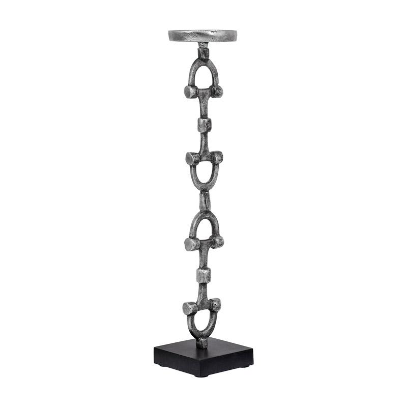 Αναδείξτε την κομψότητα και την πολυτέλεια στον χώρο σας με αυτό το εξαιρετικό μεταλλικό κηροπήγιο. Κατασκευασμένο από υψηλής ποιότητας μέταλλο με μοναδικό σχέδιο αλυσίδας και φινίρισμα σε αντικέ χρυσές λεπτομέρειες, προσφέρει έναν εντυπωσιακό και κομψό χαρακτήρα, κάνοντάς το να ξεχωρίζει και να προσδίδει μια αίσθηση διαχρονικής πολυτέλειας στον χώρο.