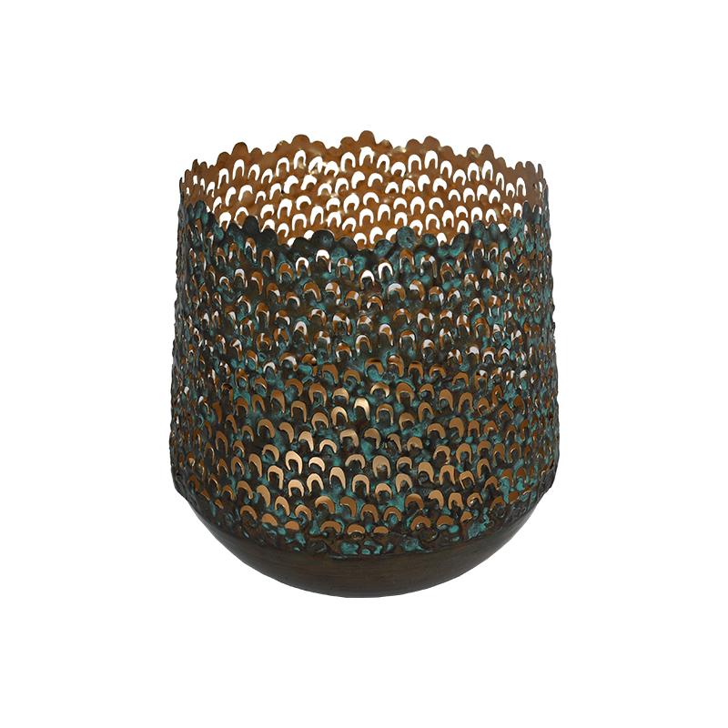 Κομψό μεταλλικό φανάρι για κερί που αναδεικνύει μια ατμόσφαιρα ζεστασιάς. Το σχεδιασμός του προσφέρει κομψότητα και μοντέρνα αισθητική, ενώ ο μεταλλικός κορμός προσφέρει ανθεκτικότητα. Ιδανικό για τη δημιουργία ενός ρομαντικού περιβάλλοντος σε εξωτερικούς χώρους ή εσωτερική διακόσμηση. Η ειδική διάτρητη κατασκευή επιτρέπει το φως του κεριού να δημιουργήσει όμορφα παιχνίδια φωτός. Ένα υπέροχο διακοσμητικό που προσθέτει φινέτσα και ατμόσφαιρα σε κάθε χώρο.
