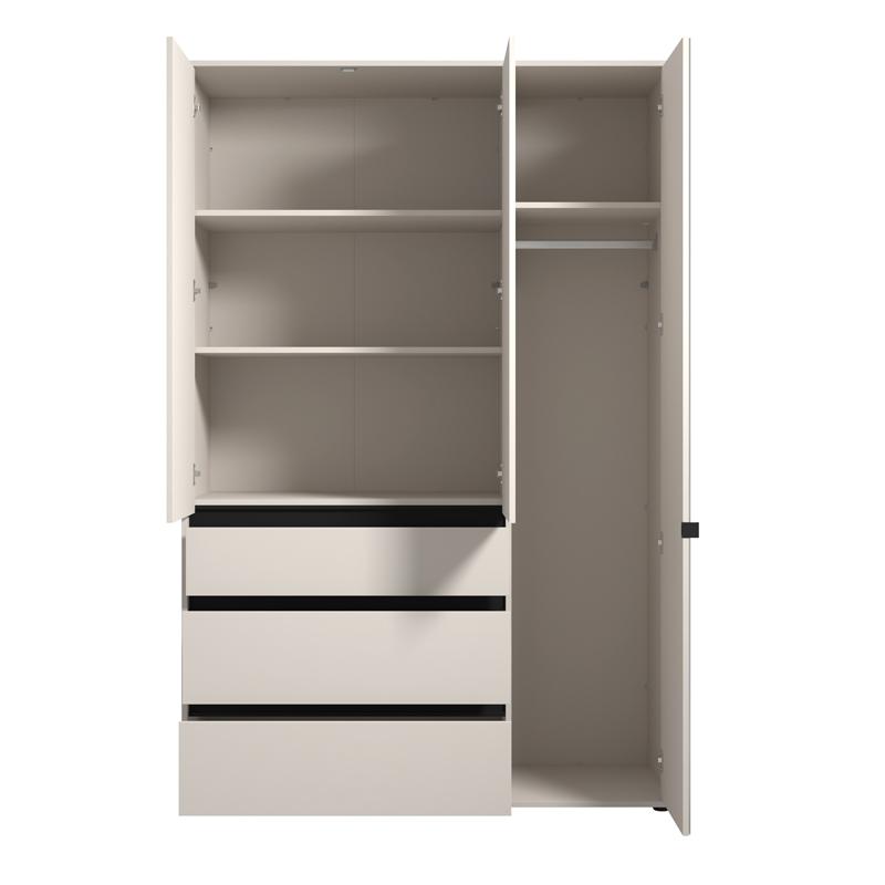 Η ντουλάπα Corbett συνδυάζει μοντέρνο σχεδιασμό με μεγάλη χωρητικότητα, προσφέροντας την ιδανική λύση αποθήκευσης για κάθε υπνοδωμάτιο. Διαθέτει μία μεγάλη πόρτα με καθρέφτη, η οποία προσφέρει πρακτικότητα για την καθημερινή σας προετοιμασία και δημιουργεί την αίσθηση μεγαλύτερου και φωτεινότερου χώρου. Παράλληλα, οι δύο μικρότερες πόρτες προσφέρουν επιπλέον αποθηκευτικές επιλογές, επιτρέποντάς σας να οργανώσετε εύκολα τα ρούχα και τα αντικείμενά σας.