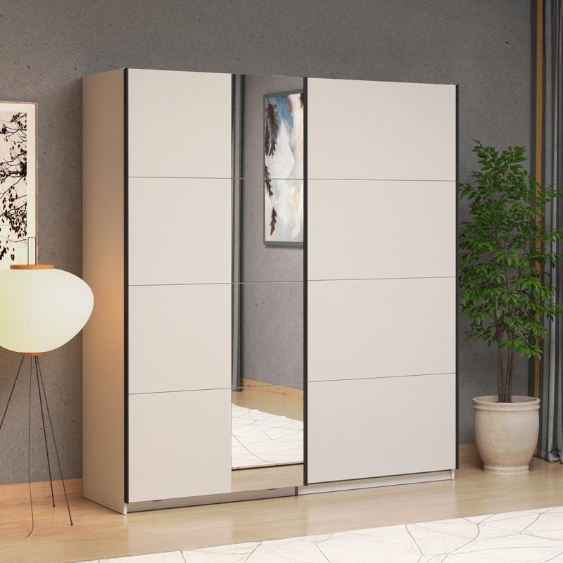 Μοριοσανίδα με πιστοποιημένη επικάλυψη μελαμίνης Ε1 ,προφίλ με MDF foil ,καθρέφτη και μεταλλική μαύρη ματ χειρολαβή.