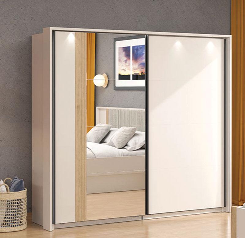 Η ντουλάπα BELFORT είναι μια δίφυλλη ντουλάπα με συρόμενες πόρτες για ακόμη περισσότερη αξοικονόμηση χώρου. Διαθέτει δύο (2) ράφια και δύο (2) ράγες κρεμάσματος ,στο αριστερό και στο δεξί τμήμα κατάλληλα για την αποθήκευση ρούχων και κλινοσκεπασμάτων. Ένα απο τα ιδιαίτερα χαρακτηριστικά της ντουλάπας είναι ο ολόσωμος καθέφτης στο ένα φύλλο.