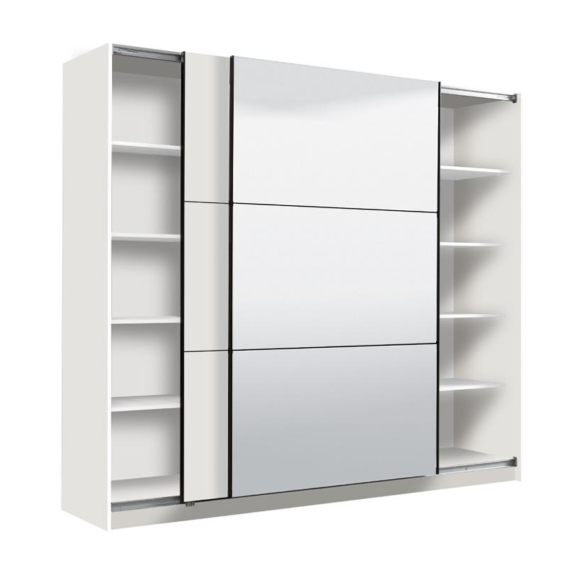 Μοριοσανίδα με πιστοποιημένη επικάλυψη μελαμίνης Ε1, καθρέφτη, και μαύρη μεταλλική ματ χειρολαβή.