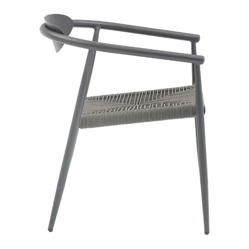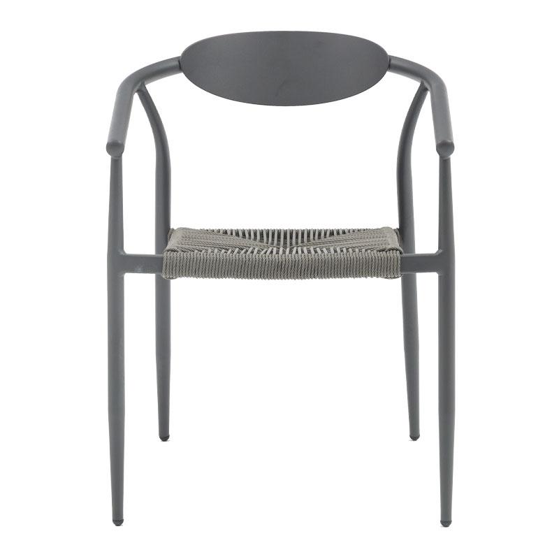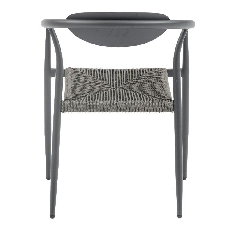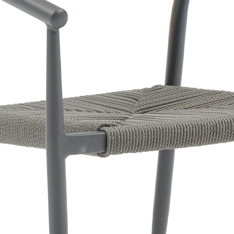 Κάθισμα: Το κάθισμα της καρέκλας είναι κατασκευασμένο από πλέξη σχοινιού τύπου Rattan. Το Rattan είναι ένα συνθετικό υλικό, σχεδιασμένο να προσομοιάζει το φυσικό rattan, αλλά με βελτιωμένη ανθεκτικότητα και αντοχή στις καιρικές συνθήκες και την υγρασία. Το σχοινί είναι πλεγμένο με τέτοιο τρόπο ώστε να προσφέρει άνεση και υποστήριξη, ενώ διατηρεί μια ελαφριά και αεράτη αίσθηση.