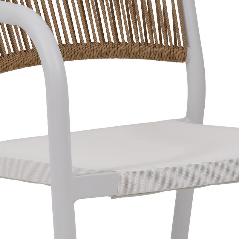 Αντοχή στις Καιρικές Συνθήκες: Ο συνδυασμός αλουμινίου, Textline και PE Rattan εξασφαλίζει ότι η καρέκλα μπορεί να παραμείνει σε εξωτερικούς χώρους καθ’ όλη τη διάρκεια του χρόνου, χωρίς να φθείρεται από τις βροχές ή την ηλιακή ακτινοβολία.