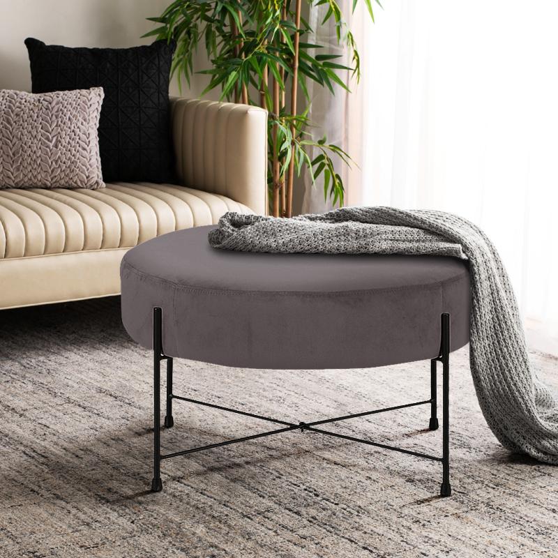 Στρογγυλό Σχήμα: Το σκαμπό είναι στρογγυλό με διαστάσεις 60 εκατοστά σε διάμετρο και 40 εκατοστά σε ύψος. Το μεγάλο μέγεθος του σκαμπό το καθιστά ιδανικό για χρήση ως βοηθητικό κάθισμα, υποπόδιο ή ακόμα και ως διακοσμητικό κομμάτι στο σαλόνι ή την κρεβατοκάμαρα.