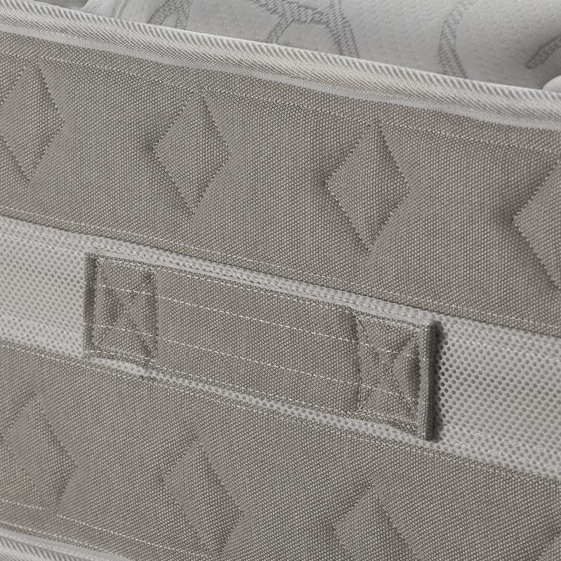 Ελατήρια pocket υψηλής ποιότητας 7 ζωνών, με περιμετρικές κολώνες στήριξης, περιμετρικών λαμών και 4 εργονομικών υλικών σε κάθε πλευρά. Στρώμα δύο εποχών με δύο όψεις, η μια πλευρά είναι μάλλινη, ιδανική για τον χειμώνα και η άλλη βαμβακερή, ιδανική για το καλοκαίρι.
