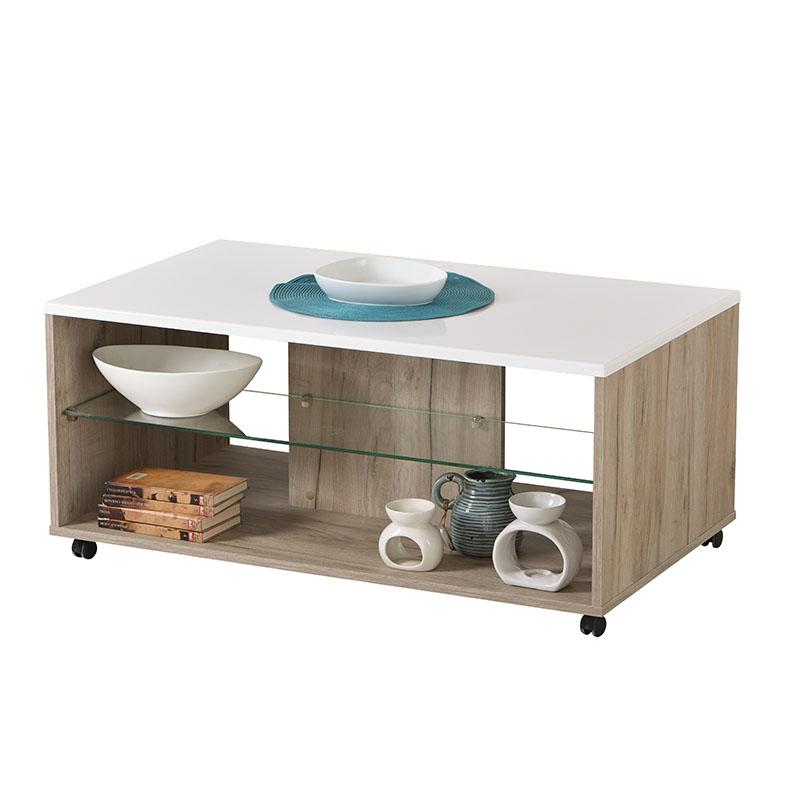 Grey oak και λευκή μελαμίνη με έξτρα επίστρωση γυαλιστερής επιφάνειας πάνω σε MDF.