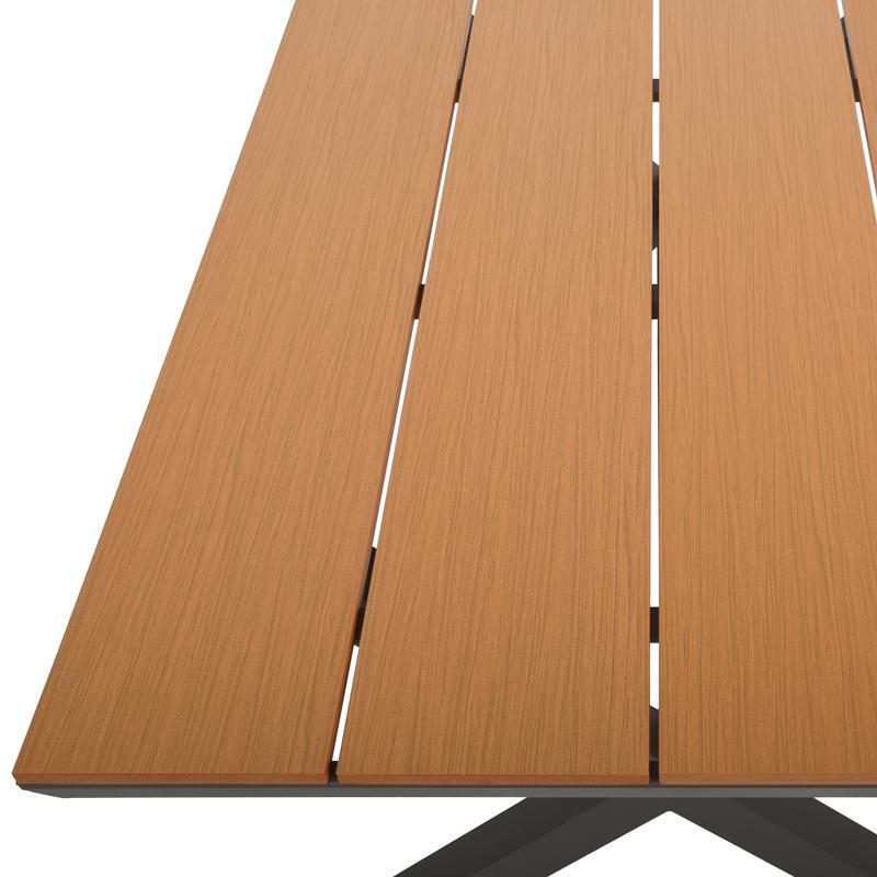 Αισθητική: Το polywood προσδίδει στο τραπέζι την εμφάνιση του φυσικού ξύλου, χωρίς όμως τα προβλήματα συντήρησης που συνήθως συνοδεύουν το ξύλο. Η συνδυασμένη αισθητική του ξύλου με το μοντέρνο μέταλλο καθιστά το τραπέζι ιδανικό για κάθε είδους εξωτερικό χώρο, από παραδοσιακούς κήπους μέχρι μοντέρνες βεράντες.
