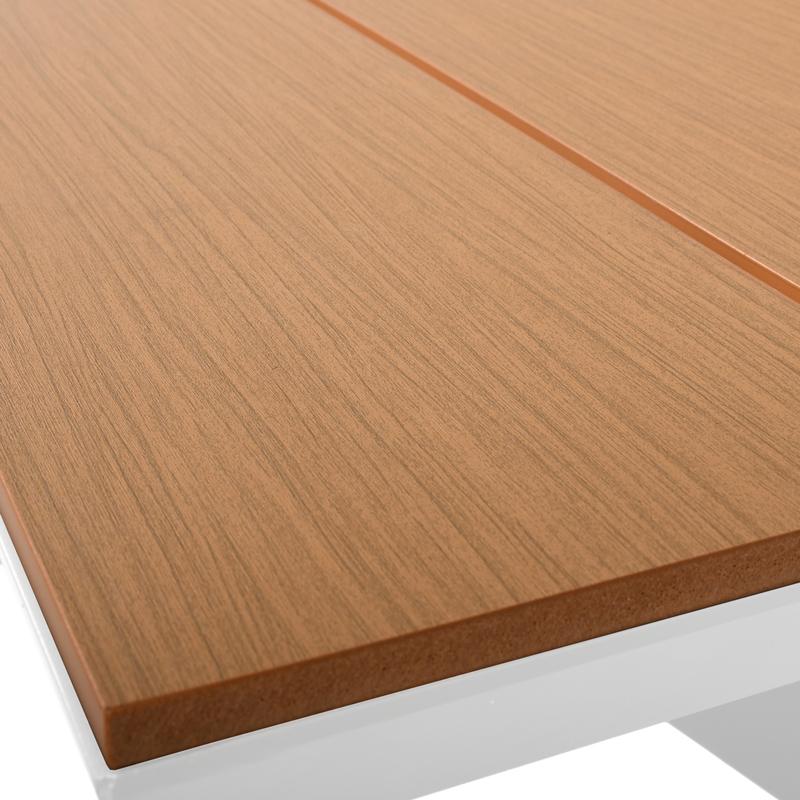 Αισθητική: Το polywood προσδίδει στο τραπέζι την εμφάνιση του φυσικού ξύλου, χωρίς όμως τα προβλήματα συντήρησης που συνήθως συνοδεύουν το ξύλο. Η συνδυασμένη αισθητική του ξύλου με το μοντέρνο μέταλλο καθιστά το τραπέζι ιδανικό για κάθε είδους εξωτερικό χώρο, από παραδοσιακούς κήπους μέχρι μοντέρνες βεράντες.