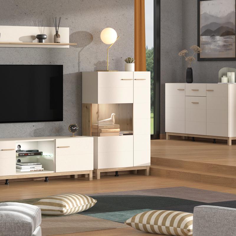 Η βιτρίνα Essex 2k vs1 127 προσφέρει έναν συνδυασμό κομψότητας και λειτουργικότητας, ιδανική για να αναδείξετε τα αγαπημένα σας αντικείμενα και να οργανώσετε τον χώρο σας. Διαθέτει τρία ράφια, παρέχοντας άφθονο αποθηκευτικό χώρο για διακοσμητικά, βιβλία ή άλλες προσωπικές συλλογές.Η βιτρίνα διαθέτει δύο πόρτες, εκ των οποίων η μία είναι εξοπλισμένη με φυμέ τζάμι, επιτρέποντας την ορατότητα των αντικειμένων που φιλοξενεί με ένα κομψό και αέρινο τρόπο, ενώ ταυτόχρονα προστατεύει από τη σκόνη. Οι μεταλλικές χειρολαβές προσδίδουν μια μοντέρνα αίσθηση στο έπιπλο και διευκολύνουν την καθημερινή χρήση.Το εφαρμοσμένο 2D τυλιγμένο προφίλ MDF εξασφαλίζει εξαιρετική ανθεκτικότητα και ποιότητα, προσφέροντας επιπλέον στυλ και φινέτσα στην εμφάνιση του επίπλου. Αυτή η βιτρίνα συνδυάζει πρακτικότητα και μοντέρνο σχεδιασμό, καθιστώντας την ιδανική για κάθε σύγχρονο σαλόνι ή καθιστικό.