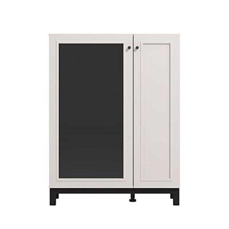 Μοριοσανίδα με πιστοποιημένη επικάλυψη μελαμίνης Ε1 ,μεταλλική χειρολαβή μαύρου χρώματος και μεταλλικό πόμολο μαύρου χρώματος.