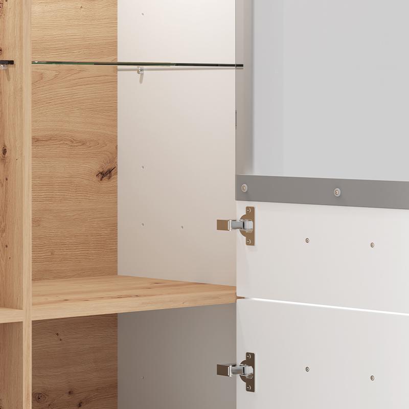 Η επιλογή του χρώματος artisan oak, λευκό και white mat foil είναι μια ασφαλή επιλογή για την δημιουργία αυθεντικής εντύπωσης και ζεστής αισθητικής. Προτείνουμε σε περίπτωση που θέλετε να ζεστάνετε ακόμη περισσότερο τον χώρο σας, να χρησιμοποιήσετε απαλά γκρι στην επιφάνεια του τοίχου σας ή απαλά πράσινα.