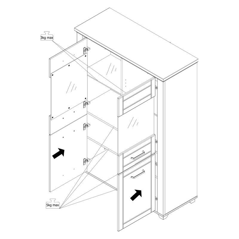 Μοριοσανίδα με πιστοποιημένη επικάλυψη μελαμίνης Ε1, επίστρωση foil mat σε MDF και μια πλαστική μαύρη χειρολαβή με άκρες αλουμινίου.