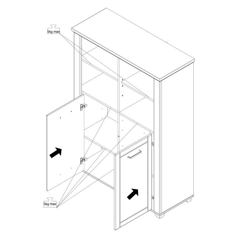 Μοριοσανίδα με πιστοποιημένη επικάλυψη μελαμίνης Ε1, επίστρωση foil mat σε MDF και μια πλαστική μαύρη χειρολαβή.